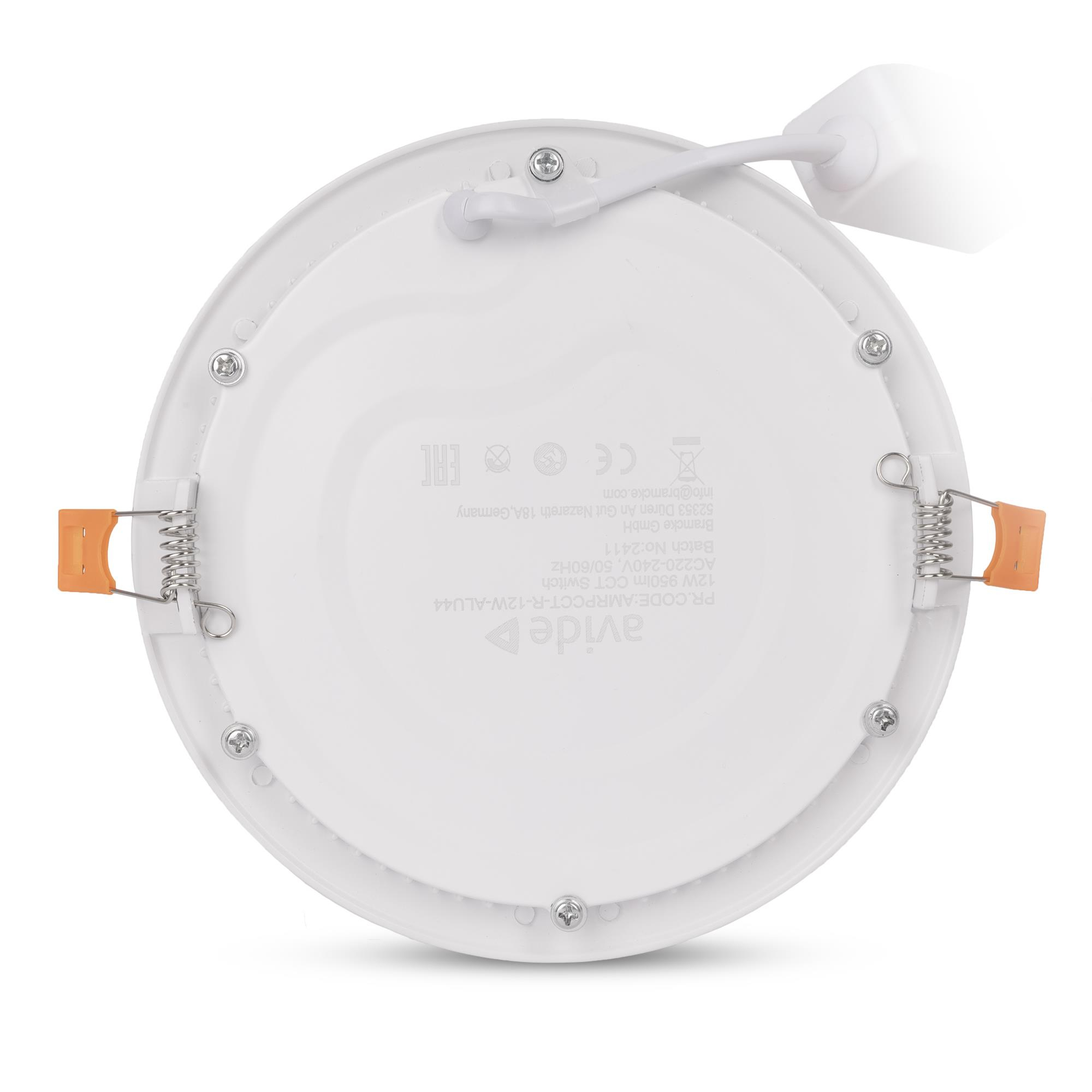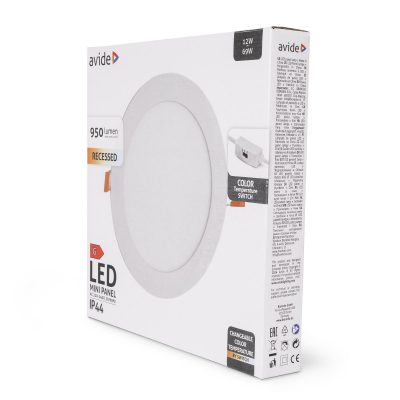 Avide LED Ceiling Lamp Recessed Panel Round ALU 12W CCT IP44/IP44