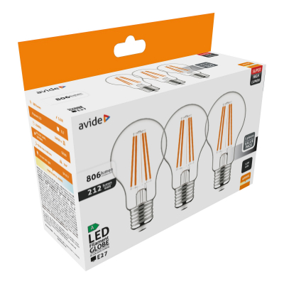 Avide LED Filament Globe 3.8W E27 NW 4000K Super High Lumen 3pcs/pack
