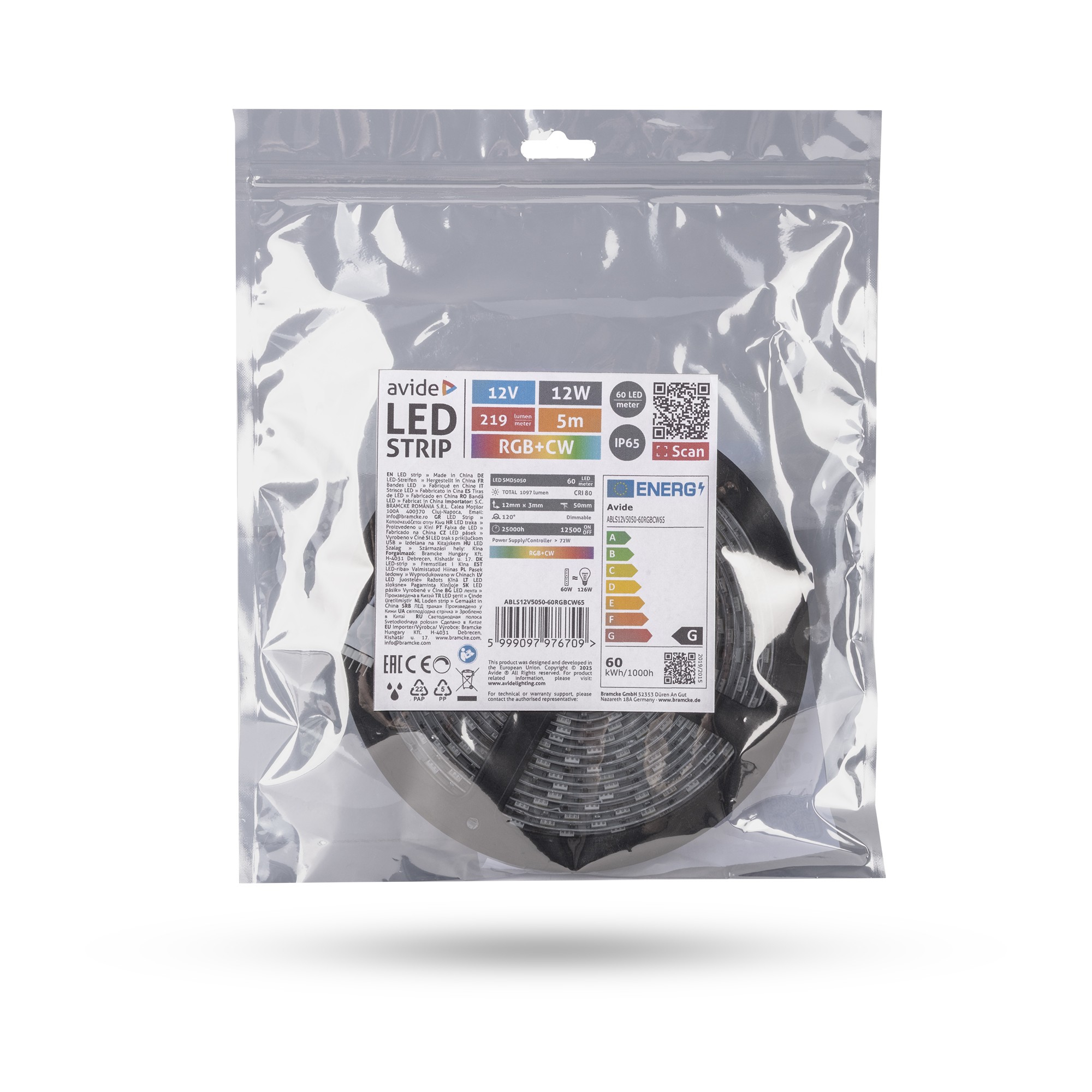 Avide LED Strip 12V 12W RGB+W(6000K) IP65 5m