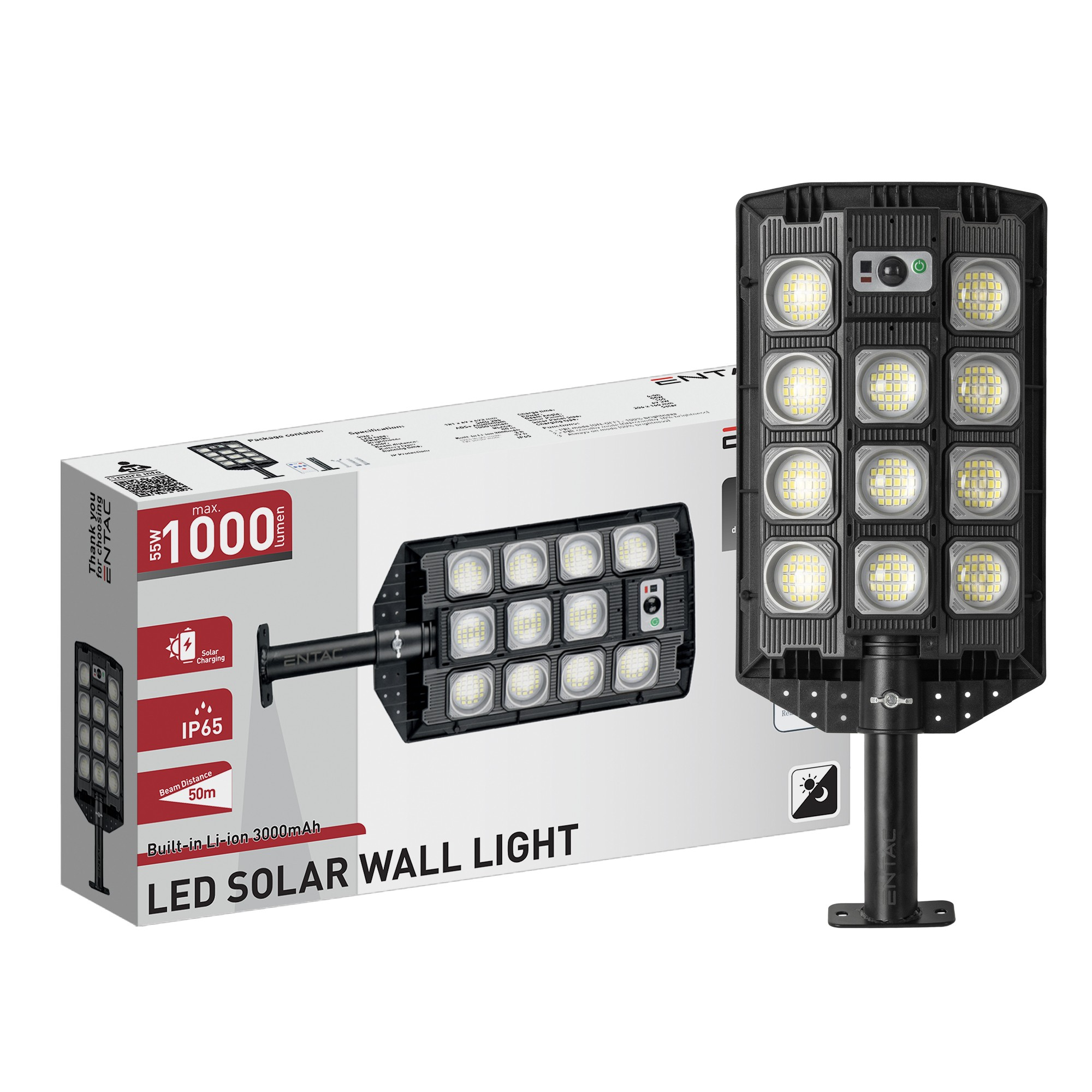 LED-Solar-Straßenlaterne mit Fernbedienung, Bewegungssensor und automatischer Dimmfunktion, 1000 lm